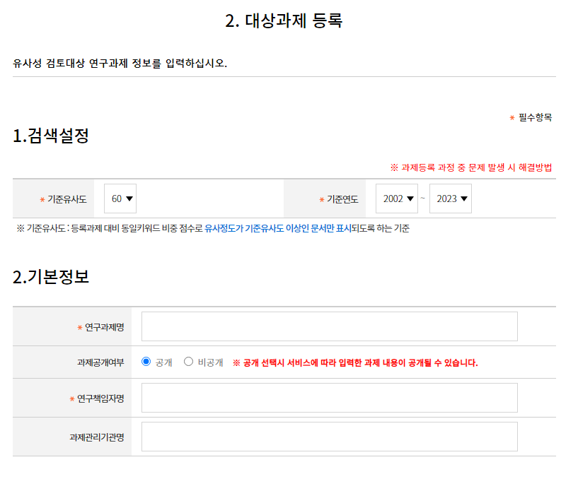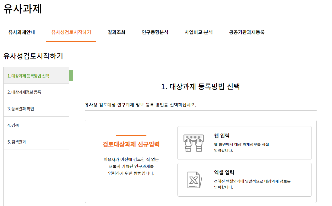 유사과제 검색은 웹이나 엑셀로 입력할 수 있는데, 나는 웹으로 입력해서 검색하고 있다.