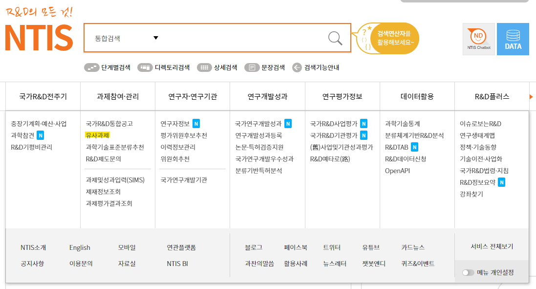 그러니 국가 과학기술지식정보서비스, NTIS의 유사과제 검색 서비스를 이용하자!